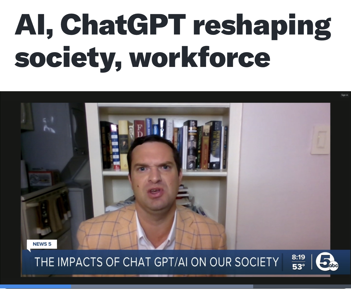 Years later, soon after OpenAI released ChatGPT in November of 2022, Fellows published a general report on how he thought it would affect the workforce in the coming years. From February 2023 to January 2024, Fellows appeared in 48 TV interviews in 19 states including South Carolina, Wisconsin, Illinois, Hawaii, Texas, Wyoming, Indiana, Florida, Pennsylvania, Alaska, Hawaii, Arizona, Michigan, North Carolina, Oklahoma, New Mexico, New York, Tennessee, Alabama, West Virginia, North Dakota, Minnesota and Georgia. You can view the interviews below the two paragraphs below.